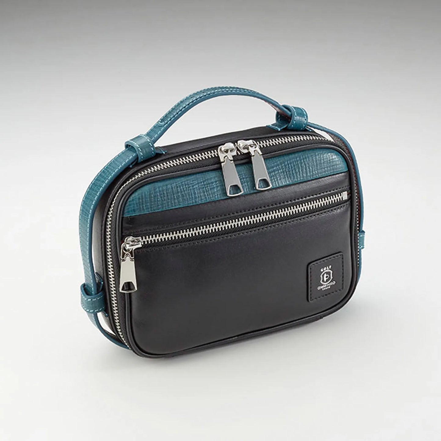 丸みを帯びたふっくらとしたフォルムにエンボスのアクセントカラーが映える、ちょっとシックで大人なゴルフポーチ。